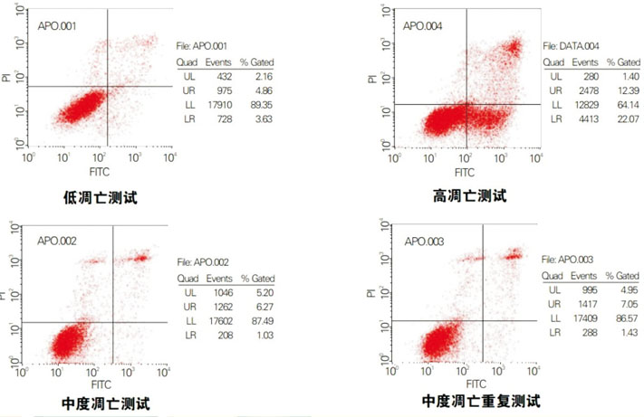 ·準(zhǔn)確:能準(zhǔn)確區(qū)分正常細(xì)胞、早期凋亡細(xì)胞、晚期凋亡細(xì)胞和壞死細(xì)胞,并計(jì)數(shù)各群細(xì)胞的比例。