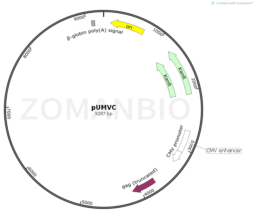 PUMVC is a low copy plasmid, cultured at 37. It is a slow virus clone plasmid. The plasmid was transformed into Stbl3.