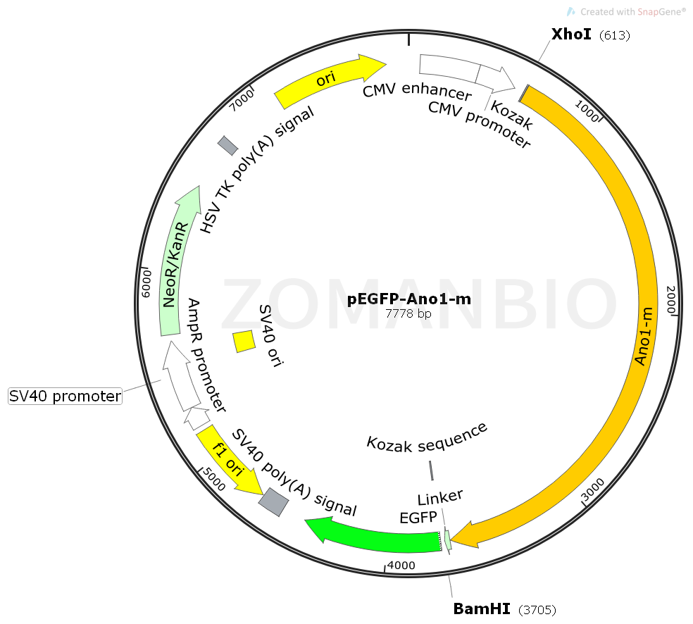 pEGFP-ANO1-m是一個(gè)小鼠ANO1基因的哺乳細(xì)胞過表達(dá)質(zhì)粒。