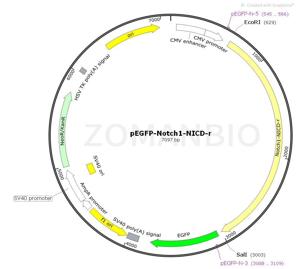 產(chǎn)品名稱:pCMV-NOTCH1-NICD(rat)(1744-2531aa)-EGFP-Neo