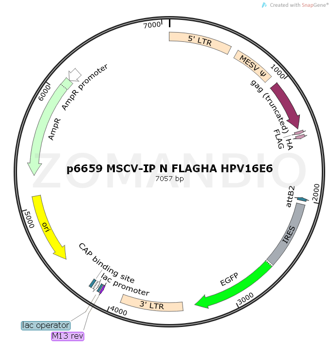 ZK1560 p6659 MSCV-IP N FLAGHA HPV16E6病毒基因質(zhì)粒.txt