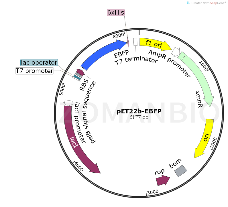 質(zhì)粒標(biāo)簽: | N-pelB,EBFP,C-6×His |