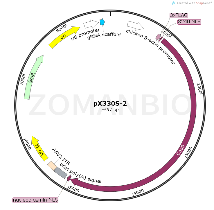 pX330S-2是一個哺乳細胞CAS9和gRNA表達質(zhì)粒。