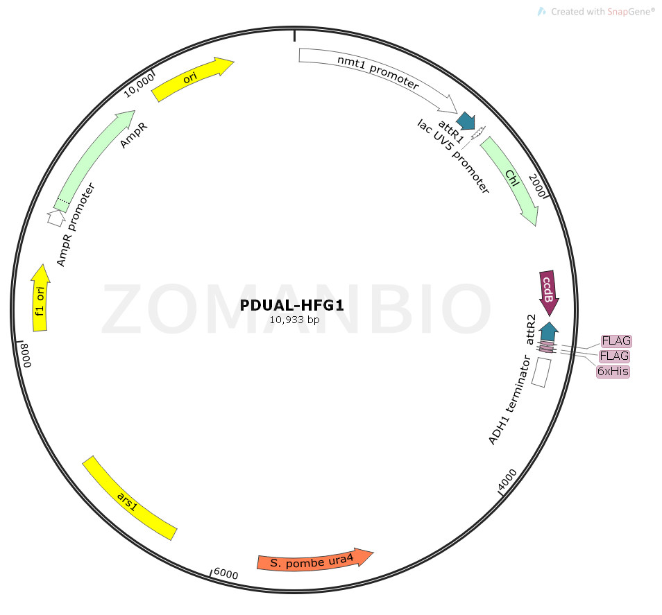 pDUAL-HFG1釀酒酵母Gateway系統(tǒng)表達(dá)質(zhì)粒,采用維生素B1抑制啟動子nmt啟動子。